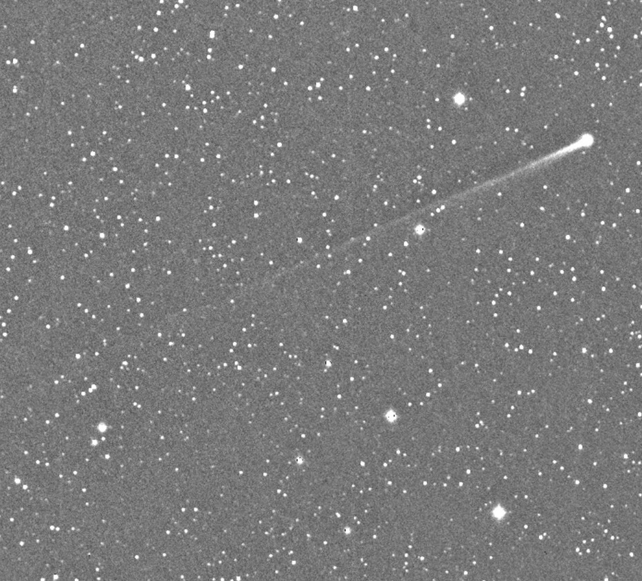 764. COMET 240P/NEAT Perihelion: 2025 December 19.97, q = 2.122 AU This is the second of two comets (that I alluded to in the previous entry) that I added to my tally in order to -- belatedly -- mark the 30th anniversary of my discovery of Comet Hale-Bopp C/1995 O1 (no. 199). It is a short-period object, originally discovered by the NEAT program in late 2002, that I have seen on two previous returns: I observed it in late 2010 (no. 483) as a very faint object during the course of "Countdown," and I observed it again in 2017 (no. 627) when it underwent an apparent outburst nine months before perihelion. In the descriptions I wrote for both of those returns I mentioned that the viewing geometry during this year's return is especially favorable, however in view of my "retirement" from systematic visual observational activities, and especially in light of the seemingly erratic behavior it exhibited during its 2017-18 return, I considered it unlikely I would be observing it this time around. On its current return Comet 240P was recovered as long ago as June 13, 2024 by the Pan-STARRS program in Hawaii. During recent weeks I have seen brightness reports as well as various images that suggested it is currently somewhat bright, and shortly after mid-July I took some images of my own via the Las Cumbres Observatory network that, in addition to showing a distinct tail, suggested it might be bright enough to attempt visually. On the morning of July 27 I successfully detected it as a relatively vague and diffuse object slightly brighter than 14th magnitude. The comet is currently located in far northwestern Eridanus about two degrees south of the star 94 Ceti and is traveling slightly northward of due east at approximately 20 arcminutes per day. It reaches its stationary point during the second week of October, after which it crosses into Taurus and begins retrograde (westward) motion. After going through opposition shortly after mid-November it is nearest Earth (1.16 AU) on the 24th of that month, then passes through its other stationary point in early January 2026, when it briefly crosses into Aries and resumes direct (eastward) motion. Now traveling towards the east-northeast, the comet crosses back into Taurus at the end of January and passes two degrees north of the Pleiades star cluster (M45) in mid-February. If Comet NEAT behaves "normally" it should brighten by perhaps two magnitudes by around the time it is at opposition and nearest Earth, and remain visually detectable until perhaps March 2026. But, given its past behavior there is no real way to know at this time whether or not it will in fact behave "normally;" it could, conceivably, be even brighter when it is near opposition and perihelion, or (I would think more likely) be distinctly fainter, and I would not rule out the possibility that it will fade dramatically and even disintegrate by that time. The only real way to know is to see what it does, and I suspect I will continue to take occasional images of it via LCO and, if these indicate it is worthwhile, might continue to make occasional visual observations as well. INITIAL OBSERVATION: 2025 July 27.42 UT, m1 = 13.7, 1.0' coma, DC = 1-2 (41 cm reflector, 229x) UPDATE (October 16, 2025): I have managed to obtain a couple of more observations of Comet NEAT since my initial sighting in late July, although since it is quite faint and until now has primarily been visible in the morning sky, it has been a rather low-priority object for me. As of my recent observation at this writing, which I obtained in late September, it had brightened slightly, to about 13th magnitude. Meanwhile, in early October Vivian Carvajal with the Catalina Sky Survey in Arizona reported her discovery of a faint companion comet traveling alongside Comet NEAT -- obviously a fragment of the primary object. After I read of her report I examined images I had previously taken of Comet NEAT via the Las Cumbres Observatory network, and succesfully found this companion object on images I had taken on September 17, although I have been unable to find it on images I took in late July. I have just recently taken some additional images of Comet NEAT, including some with longer exposure times, and these show the fragment -- now designated as Component "B" -- rather well, with a tail structure that appears to mimic that of the primary component. The fragment is about 18th magnitude, obviously too faint for any meaningful visual attempts.